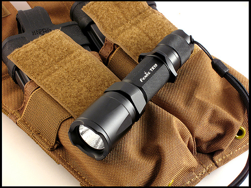*Включени аксесоари: калъфче за колан или тактическа жилетка,клипс , ремъчка,два резервни о-пръстена и резервна гумена капачка на бутона за включване