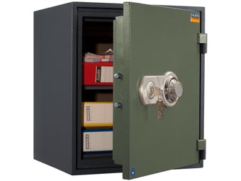 - кутията и врата на сейфа са двустенни с пълнеж от огноупорен бетон