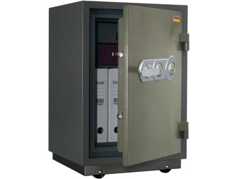- кутията и врата на сейфа са двустенни с пълнеж от огноупорен бетон