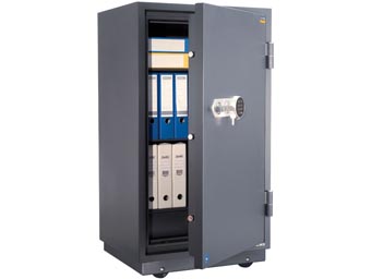 - кутията и врата на сейфа са двустенни с пълнеж от огноупорен бетон
