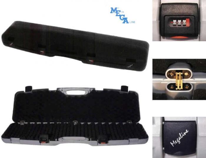 Куфар за ловно оръжие Megaline(125x25x11 c Код) Mod. 200/62.Произведен от устойчив полимер с четири ключалки, две от които с шифърно заключвaне. Дължина 125 сm Ширина 25 сm Дебелина 11 сm Цвят: Черен Заключване: 2 Обикновенни + 2 Кодирани
