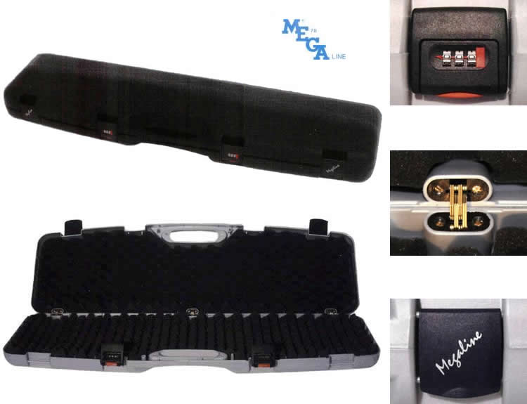 Куфар за ловно оръжие Megaline(97x25x11c Код ) Mod. 200/2.Произведен от устойчив полимер с четири ключалки две от които с шифърно заключвне. Дължина 97 сm Ширина 25 сm Дебелина 10 сm Цвят: Черен Заключване: 2 Обикновени + 2 Кодирани